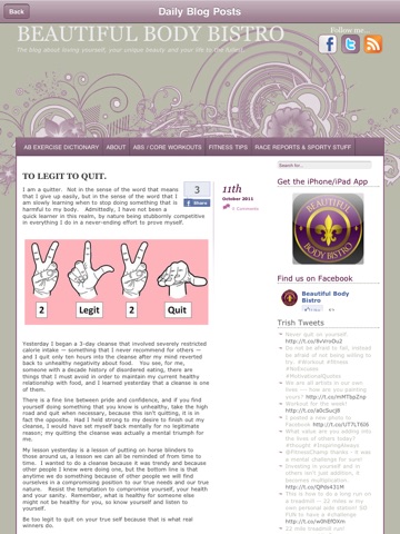 --Easy access to Trishs daily blog posts from her website.