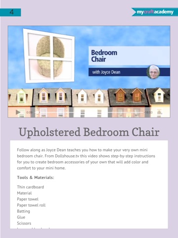 Various articles, projects, video tutorials and more await you in this Beautiful Bedrooms app. Expert miniaturists will guide you through steps to beautify any dollhouse bedroom.