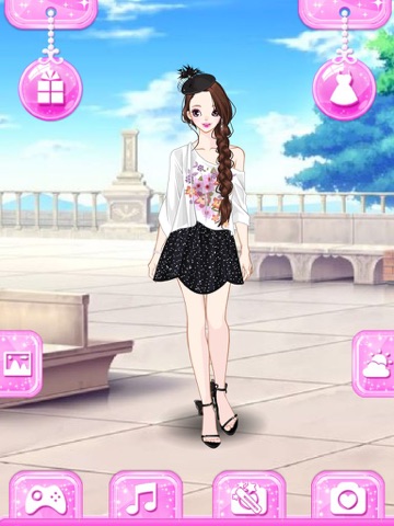 Touch the screen to enter the main interface, you will find gift boxes through the upper left button. Click to unlock clothes and other accessories in the gift boxes, then you can dress up the model. Besides, you can change the weather and backgrounds. After that, you can save the picture or take a photo! Remember you just need time to get more red hearts! It is all free!