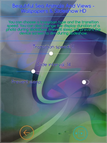 You can view the photos in a form of a slideshow or you can save each single photo in your photo library and set them as your wallpaper anytime you want. Swipe left or right during preview to change the photos. You have also the possibility to exclude any photo from the slideshow or change the transition or slide interval (in seconds) between slides.