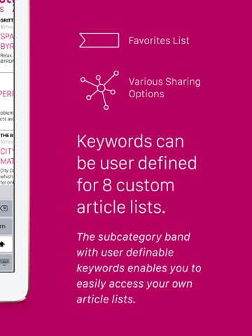 The category banner with user-definable keywords enables you to easily create your own article lists.
