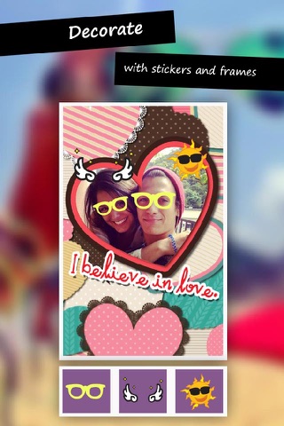 Share personal moments of you with families and friends. Pick the desired frames or stickers, then add to your selfie photo, arrange and share it. Thats easy! Simple and easy to use wherever you are.