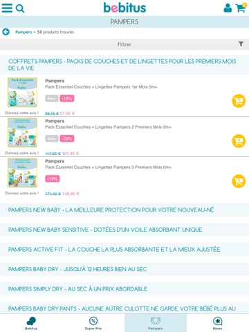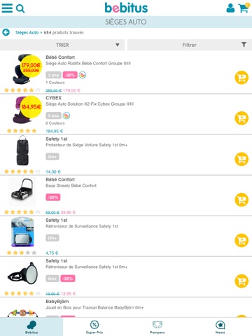 TOUT CE DONT VOTRE BÉBÉ A BESOIN, EN UN SEUL CLIC. Ne perdez pas de temps à visiter les magasins : avec lapplication Bebitus, vous pouvez acheter tout ce dont vous avez besoin sans faire la queue ou attendre. Recherchez et achetez plus facilement à partir de lapplication dans le plus grand magasin en ligne de produits pour bébés sur le marché. Choisissez parmi des milliers darticles pour bébés, mères et pères dans toutes les catégories : Couches et tables à langer, Aliments pour bébés, Hygiène, Chaises de voiture, Jouets et cadeaux, Vêtements et textiles, Produits pour mères, etc.... Consultez les fiches produits complètes avec photos, vidéos et avis dutilisateurs. Accédez aux espaces des marques pour voir tous les produits de votre marque préférée. Trouvez des articles de qualité supérieure des meilleures marques telles que Dodot, Jané, Philips Avent, Chicco ou Cybex, à des prix irrésistibles, venez comparer !
