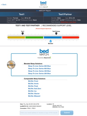 Enhance the customer experience with hands-on guidance supported by personalized diagnostic data that is accessible anywhere on the retail floor. Use this navigation tool to pull bedMATCH diagnostic profiles in real time, created for your specified retail location and guide customers through the product selection process with their diagnostic results at your consultants fingertips