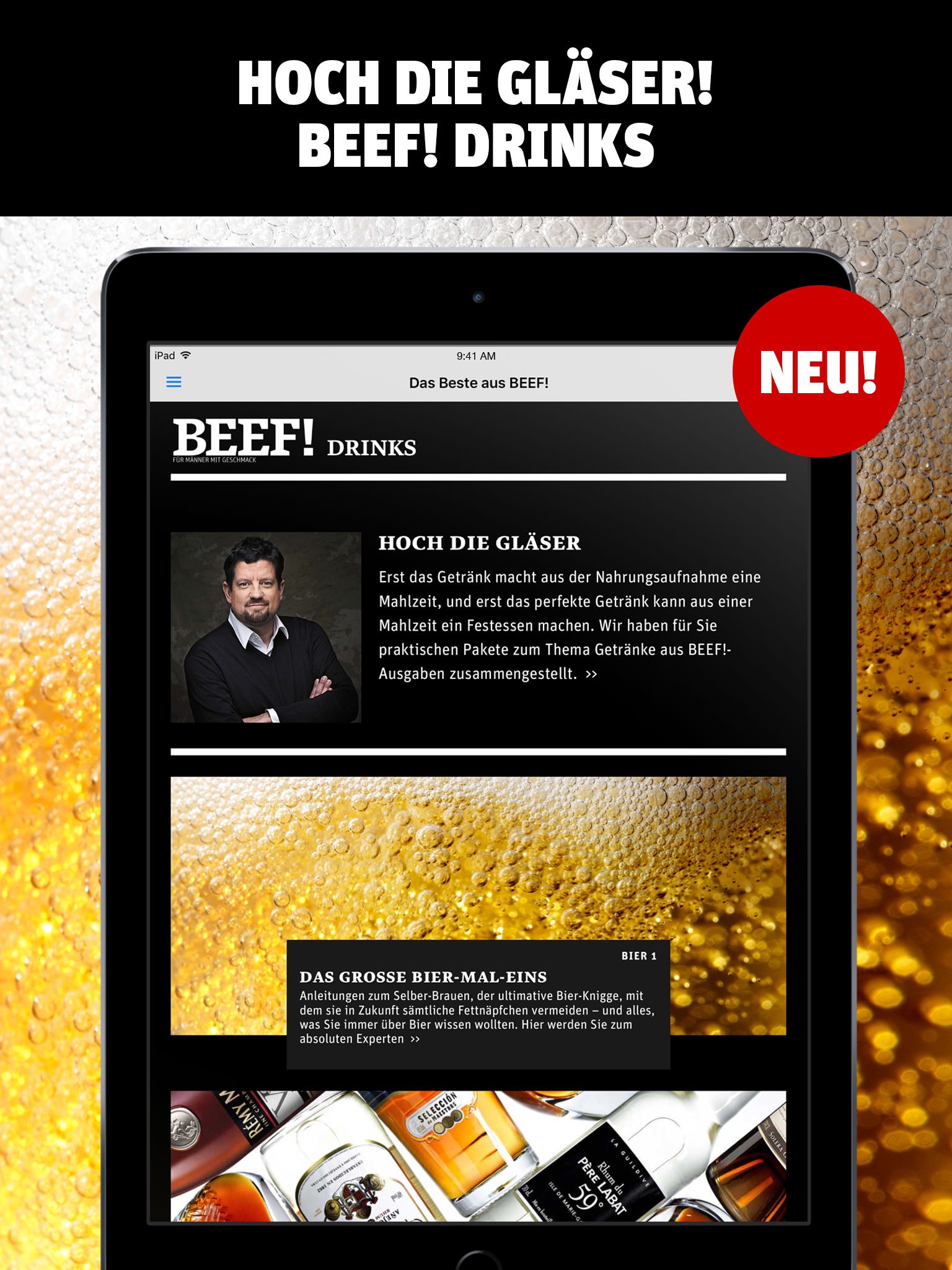 Die Inhalte stammen aus bereits erschienenen BEEF!-Ausgaben sowie aus unserem Getränke-Spezialheft. Wir haben sie sorgfältig auswählt und neu für Sie zusammengestellt – in praktischen Paketen zu unterschiedlichen Themen. Die Pakete können nach einer kostenlosen Vorschau für jeweils 1,99 € erworben werden.