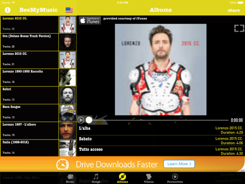 Are you looking for a tool that enables you to have Lorenzo Jovanottis’s music, videos, news and gossip always with you? BeeMyMusic (Jovanotti edition) is the app for you.
