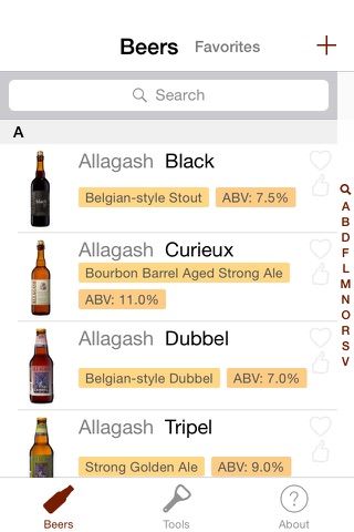 Jammed full of information, Beer Advisor offers lots of information for each beer such as ABV, IBU, Smells, Tastes, Appearance, Malts, Hops, Cuisine, and so much more. With the favorites list you can quickly and easily remember your top beers and share them with friends. A tools section allows you to quickly calculate your BAL, ABV and more effortlessly.