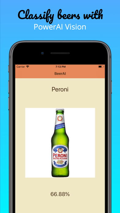 Want to know what beer youre holding? This app uses a custom AI, built in AI Vision, to classify different beer brands. Simply snap a photo from the camera, or select from your camera roll and our AI will instantly tell you the brand and confidence of the AI.