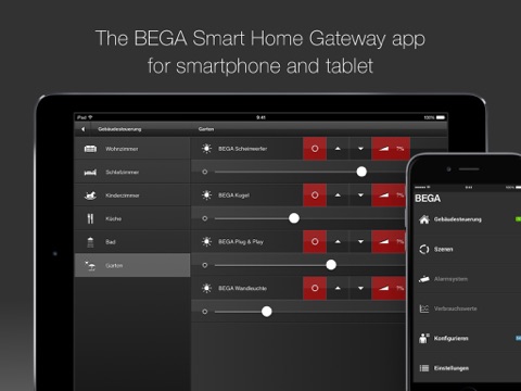 The BEGA Gateway app allows you to dim lights, switch sockets on and off, regulate shading, measure your power consumption and many other things.