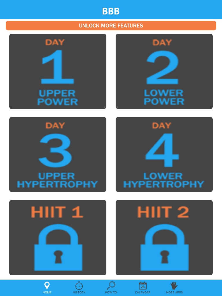 Simply download this free muscle building app and enjoy many of our free features. You will start on day one, which is our upper power workout. Follow the blinking blocks which indicate how many reps that you will be doing for each set. A timer will automatically pop up in or to keep pace for maximum muscle gains. We have default starting weights, but you can easily change those by tapping on the weight and scrolling through to your desired weight that you would like to lift. Click on the illustration tab to see exactly how to perform the workouts.