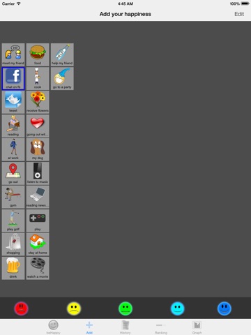 beHappy allows you to store your happiness trend featuring some statistical characteristics (average, frequency, max, min) that can help you better understand the trend itself.