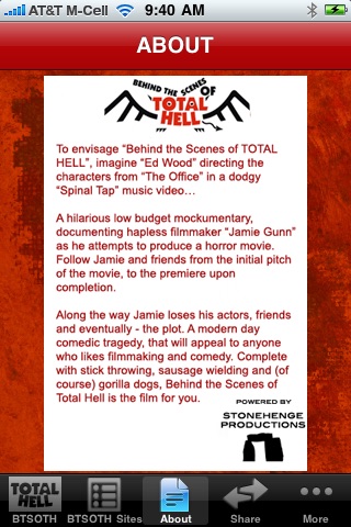 To envisage "Behind the Scenes of TOTAL HELL", imagine "Ed Wood" directing the characters from "The Office" in a dodgy "Spinal Tap" music video...