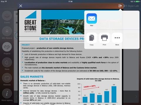 All aspects of doing business, investment opportunities, business news, incentives and key facts about Belarus, one of the most promising emerging markets, are presented in the user-friendly Invest in Belarus app at the convenience of your smart phone or tablet.