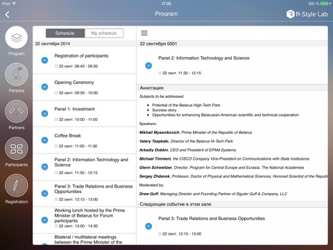 Application contains detailed information about business program events, round tables schedule, important information on doing and expanding international business opportunities in Belarus.
