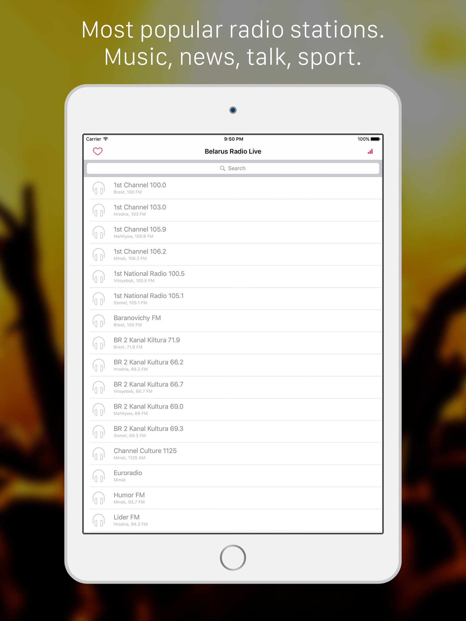 With the app, you can listen to live streaming of news, music, sports, talks, shows and other programs in Belarus.