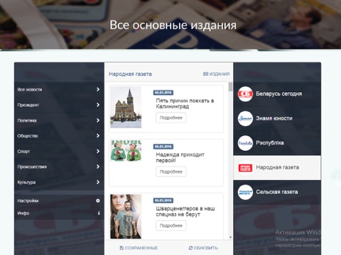 Кроме того, с помощью приложения можно читать свежие материалы и новости следующих изданий объединённой редакции:
