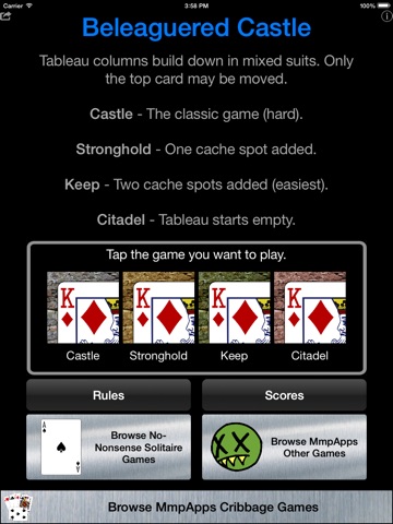 Four games based on FreeCell. You can move only a single card at a time. Totally free. No in-app purchases.