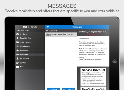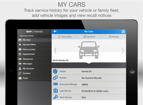Make your vehicle ownership experience easy with the free Bell Honda mobile app. This feature-rich app allows you to get the most out of your vehicle by helping you to maintain and organize essential car details like service history, as well as save money with mobile offers and coupons!