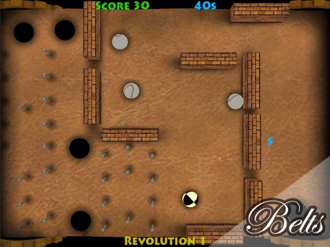 Belts is a mechanical labyrinth. A belt turns around and you have to keep your ball at the top by tilting and turning your device. On the belt are different obstacles and you have to find your way as the belt turns. Do not fall off and watch out for holes, cannons, smoke and other obstacles. When you manage one revolution the speed increases, but that’s alright, you have already manage one revolution so you know your way.