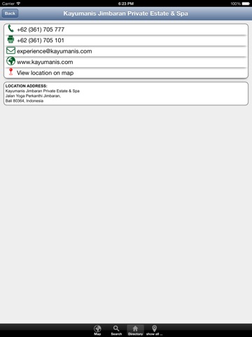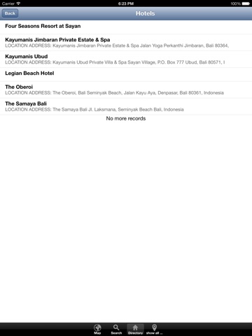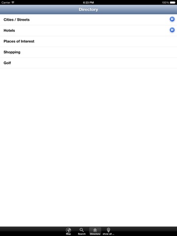 Whatever you are looking for a major street, a hotel, restaurant or shopping center, just open the appropriate category and browse through the entries. If you choose the name of an object additional information may display in a popup panel press on “View Map” and the map will jump to the location of the object and the object will be marked.
