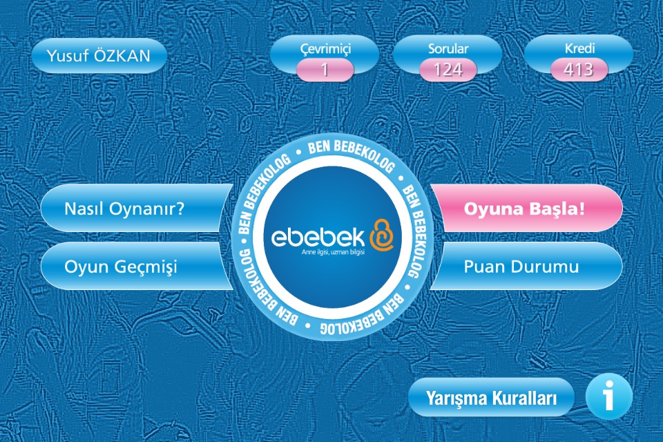 Oyuna başlayabilmek için ebebek üyeliği gereklidir. Üye değilseniz oyun üzerinden üye olup, oyuna başlayabilirsiniz. Üye iseniz, mevcut ebebek üyeliğiniz ile giriş yapabilirsiniz.