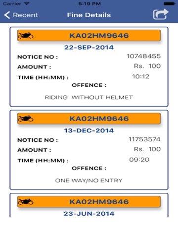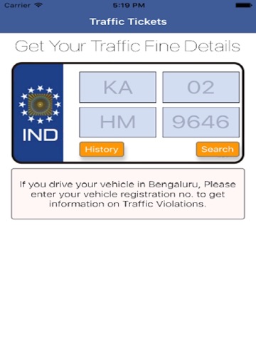 All the vehicle registration number that are searched by you are automatically saved in your phone. For looking up the violations again for the same vehicles, just tap on the history option and you can get the details without typing the number.