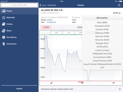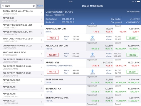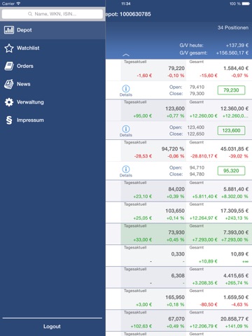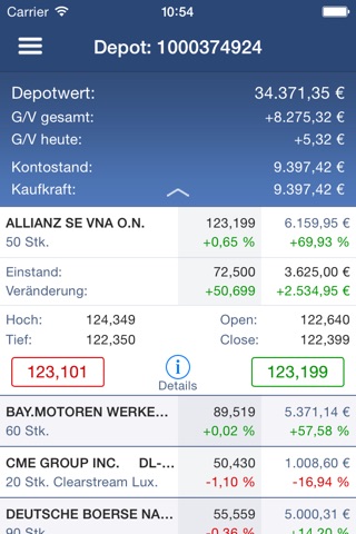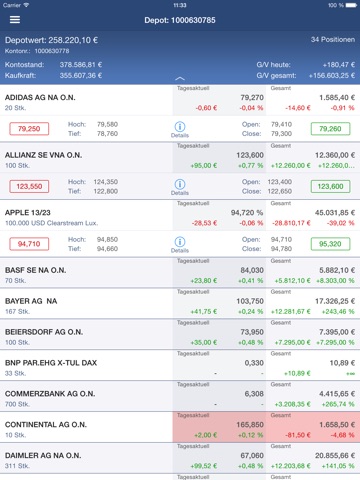 - Anzeige des Depotbestands in Realtime