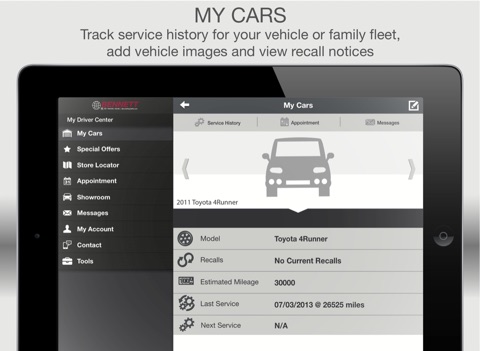 Make your vehicle ownership experience easy with the free Bennett Toyota Pa mobile app. This feature-rich app allows you to get the most out of your vehicle by helping you to maintain and organize essential car details like service history, as well as save money with mobile offers and coupons!
