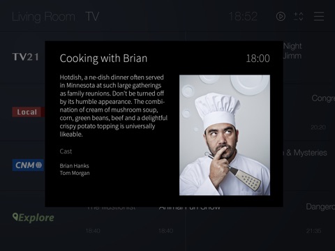 The BeoRemote App for iPad and iPad mini inspires and informs your TV viewing experience like no other. Featuring an advanced electronic program guide, the app lets you explore your options, discover new content and plan your TV viewing without disturbing what’s happening on the TV screen. The electronic program guide information appears in the BeoRemote App via the same unified user interface, regardless if your broadcast comes from the TV tuner or from a connected Set-top Box.