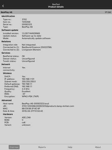 BeoTool is designed to create an assessment of your Bang & Olufsen BeoLink Multiroom products. It will analyze and display status of online services and offer reporting. The target group is certified installers of Bang & Olufsen products.