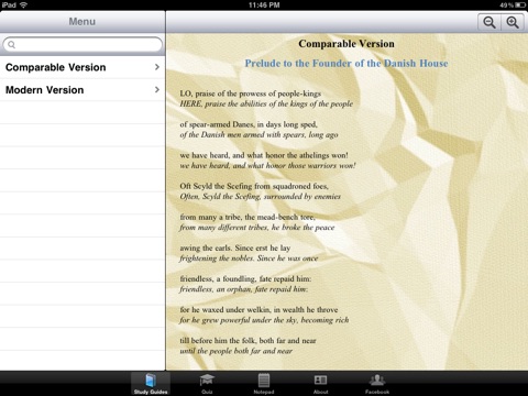 This app also includes an interactive quiz to test your Beowulf knowledge.