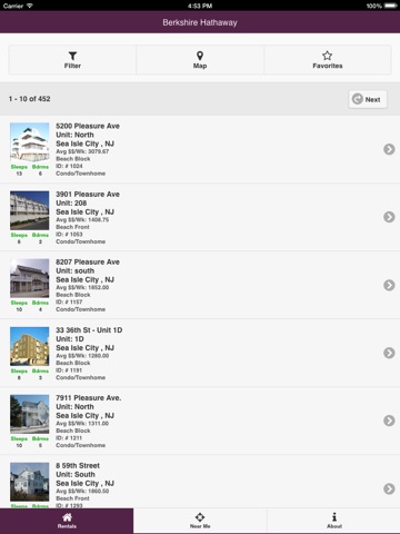 With this app you can view all aspects of vacation properties to rent in the Sea Isle areas, including: