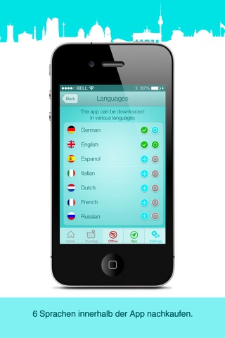 Die App gibt’s in 7 Sprachen: Deutsch, Englisch, Spanisch, Französisch, Italienisch, Russisch und Niederländisch.