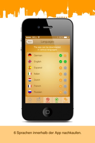 Die App gibt’s in 7 Sprachen: Deutsch, Englisch, Spanisch, Französisch, Italienisch, Russisch und Niederländisch.