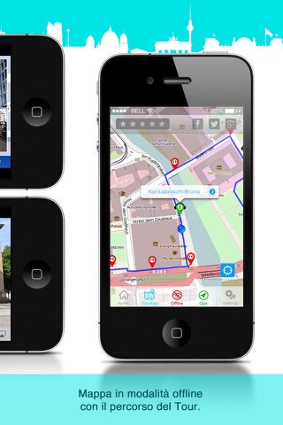 Si tratta di 4,2 chilometri attraverso le principali attrazioni turistiche di Berlino, un tour progettato per esplorare e scoprire le bellezze della città. Lapplicazione possiede una mappa offline che mostrerà attraverso il GPS, in ogni momento il posto in cui si trovano in città.