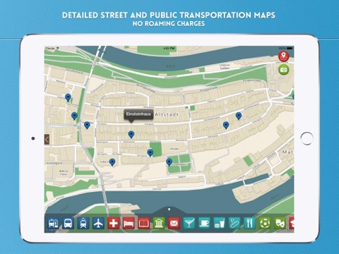 - INTERACTIVE POINTS OF INTEREST on the maps showing public bus stops, restaurants, pubs, hotels, hospitals, museums, theatres, and many others.