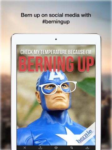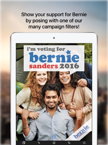 Swipe through various campaign filters, add “Bernie” silhouette to any photo, and #berningup on social media for maximum exposure.