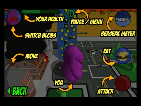 Smash everything in sight with your tentacles or kick vehicles into buildings for extra damage. Tag team with 3 different blobs, each with their own berserk powers. The more destruction you do, the more berserk you can go, giving you the power to level a city in seconds!
