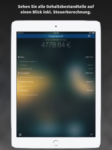 Aus Familienstand und der Anzahl Ihrer Kinder berechnet die App Familienzuschlag und Kindergeld automatisch.