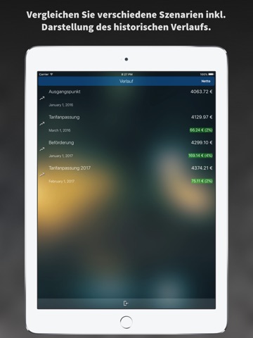 Legen Sie unterschiedliche Szenarien an, um die Entwicklung Ihres Gehalts über die Zeit im Blick zu behalten oder unterschiedliche Karrierealternativen gegeneinander abzuwägen.