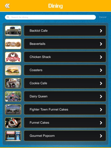 √ Full dining menus for all park restaurants, carts and stands
