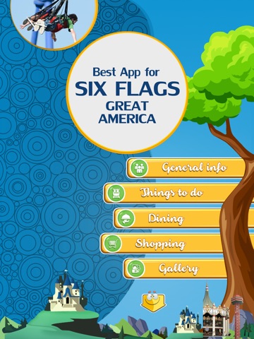The premier Six Flags Great America Guide app includes visitor info, rides, theme parks, water parks, kids rides, shows, hotels, shopping, dining, park hours, attractions, photo gallery, poi search, translator, world clock.