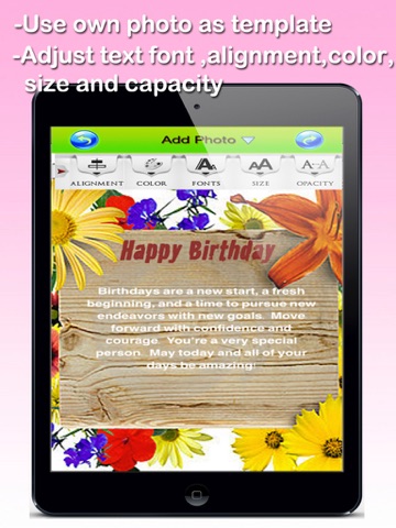 I tried really hard to like this but forget it. The menus are confusing, I have no idea how to add a name, date or any other information to the pre scripted texts. The quality in the birthday cards look very dull and the app all around is not good. Theres this ... Button that serves no purpose what so ever. It just takes you to a screen and states item isnt found. Okay....? At any rate this is an app with very poor quality and not user friendly.