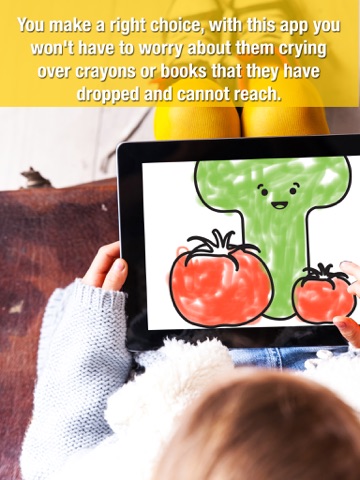 You make a right choice, with this app you wont have to worry about them crying over crayons or books that they have dropped and cannot reach. The touch screen is easy to pick up and play for both kids and adults.