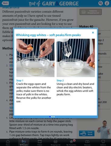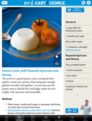Ive been keeping an eye on this app for a little while now and Im really GLAD I discovered these chefs and their user friendly, easily navigated app filled with delicious (looking) photos and step-by-step prepartion instructions!! At the top of my To-Do List is the Open Lamb Kofta with Cucumber, Mint and Corinader Salad! The app has all the must haves bells and whistles (for us foodies) with the exception of one IMPORTANT option; that being the option to view ALL ingredients and degrees in EITHER Imperial or Metric; at present, recipes contain both, i.e., "200 g chilled unsalted butter, chopped", "1/2 cup sour cream", "Bake dought at 220C...". Having ALL in either Imperial or Metric would make prep work and putting the recipe together A LOT easier. On the other hand, theres a very cool Edit option in My Favorites -- editting allows you to delete recipes as well as move them into whatever order you wish. Overall, Im quite pleased with the Best of Gary & George app! Im keeping my fingers crossed on an update that will include an option fix for the dual measurements and while the app is half off, I highly suggest picking this one up!!
