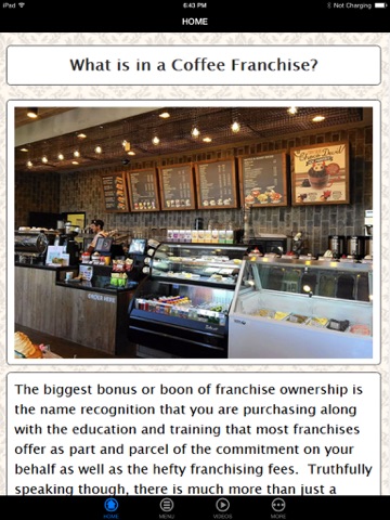 With all of the different business opportunities that are out there, choosing to find a business opportunity with a coffee franchise is a good business decision. Especially, when you are choosing to work with a Coffee Franchise. This is a franchise that has the best support. The fact of the matter is that coffee consumption, especially specialty coffee, is on the rise. Consider this fact -- 49% of United States citizens drink over 4 cups of coffee each day. They want to see you grow and thrive in the business. Not only that but you have the benefit of name recognition. It is important when looking forward to getting into the business that you are recognized by others. However, too much of a good thing can be a negative, especially with market saturation. If youre contemplating investing in a gourmet coffee franchise then there are some things you have to do first to increase your chances of success. Well discuss them in this App.