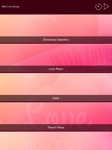 Valentines Day is approaching, and all of us are busy organizing what is sure to be a special evening with our loved ones. Are you still looking for the perfect romantic music to act as a background on this lovely occasion, or are you out of ideas? Well then you just found the right App for you! Best Love Songs includes some of the most emotional instrumental valentines day songs you could wish for. Start it up, and immediately choose from a selection of 12 romantic piano tracks with which to liven up your evening. The first 6 songs are completely free for you to enjoy. Unlock all the others through in app purchases!