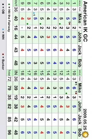 If your score is even one stroke better (or worse) than the previous round, one ball mark will light up on the home screen.
