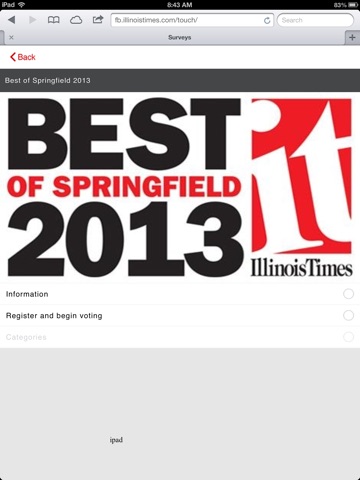 Cast your vote for local favorites in Illinois Times annual Best of Springfield Readers Poll. The Illinois Times weekly alternative newspaper covers politics, local issues, arts and entertainment, movie reviews, dining, bars, live music and area events in Springfield and central Illinois.