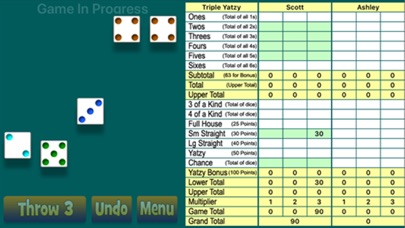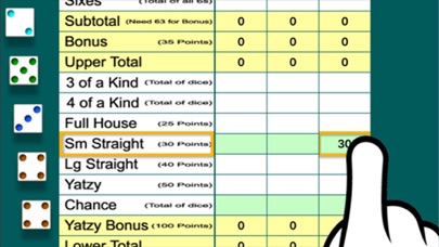 Normally, a phone screen is too small to display a Triple Yatzy scorepad. But with our unique magnify feature, you can record your scores right on the scorepad. If you make a mistake, you can "Undo" and try again.